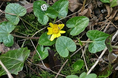 Ficaire fausse-renoncule, ficaire printanière, renoncule ficaire, herbe aux hémorroïdes,petite Chélidoine, petite Scrofulaire, herbe au fic, billonée, clair-bassin, épinard des bûcherons